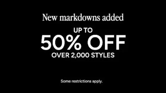 Hurry in and save! Shop in store and get up to 50% off on select merchandise, for a limited time.
